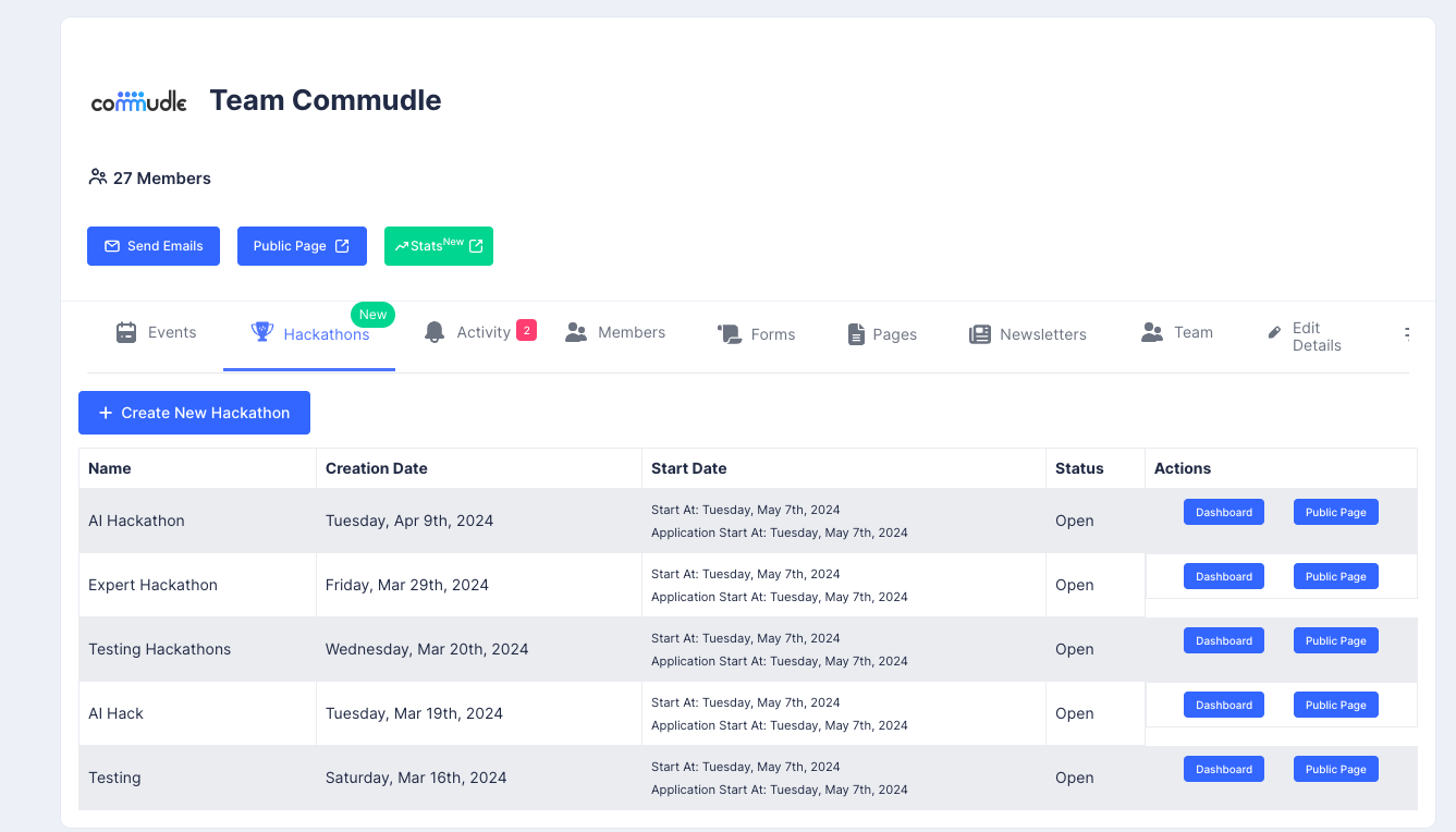 2. Click **Create New Hackathon**